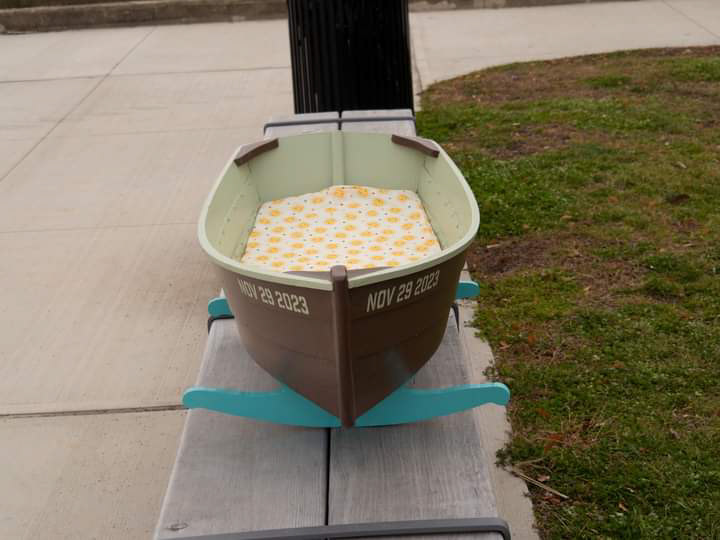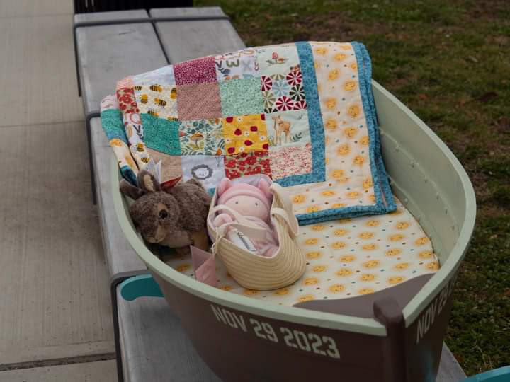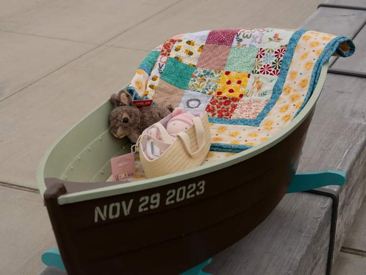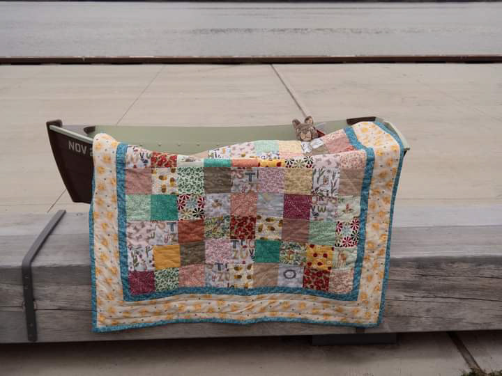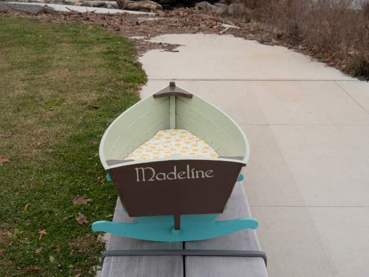 This is a baby gift for our first grand child. The quilt by me, and the cradle by my husband, Howard Raver.