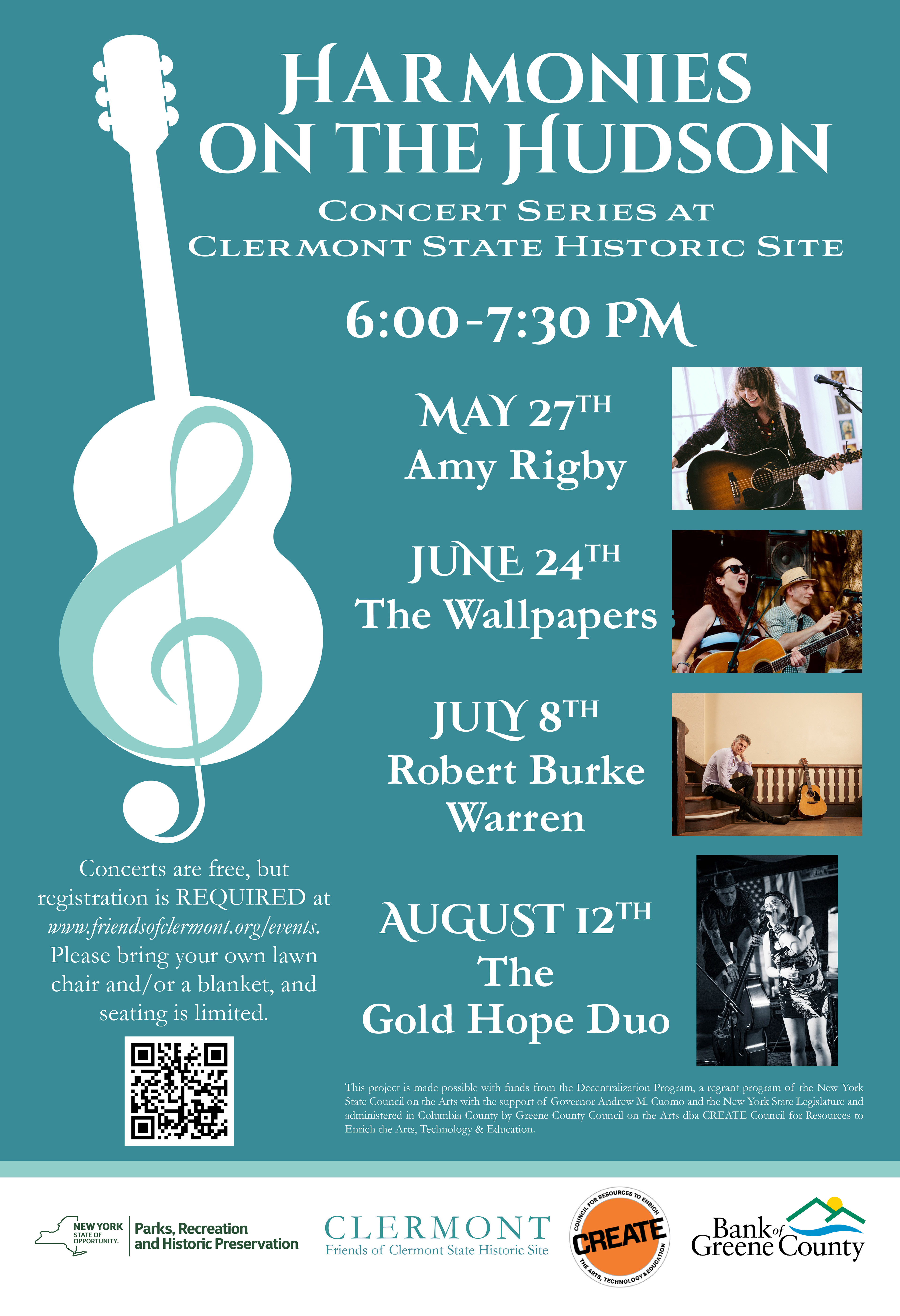 This was designed as freelance work for Clermont State Historic Site in the Hudson Valley. This design incorporates a treble clef inside a guitar, making use of the negative space. This entire design uses their color palate for their branding.