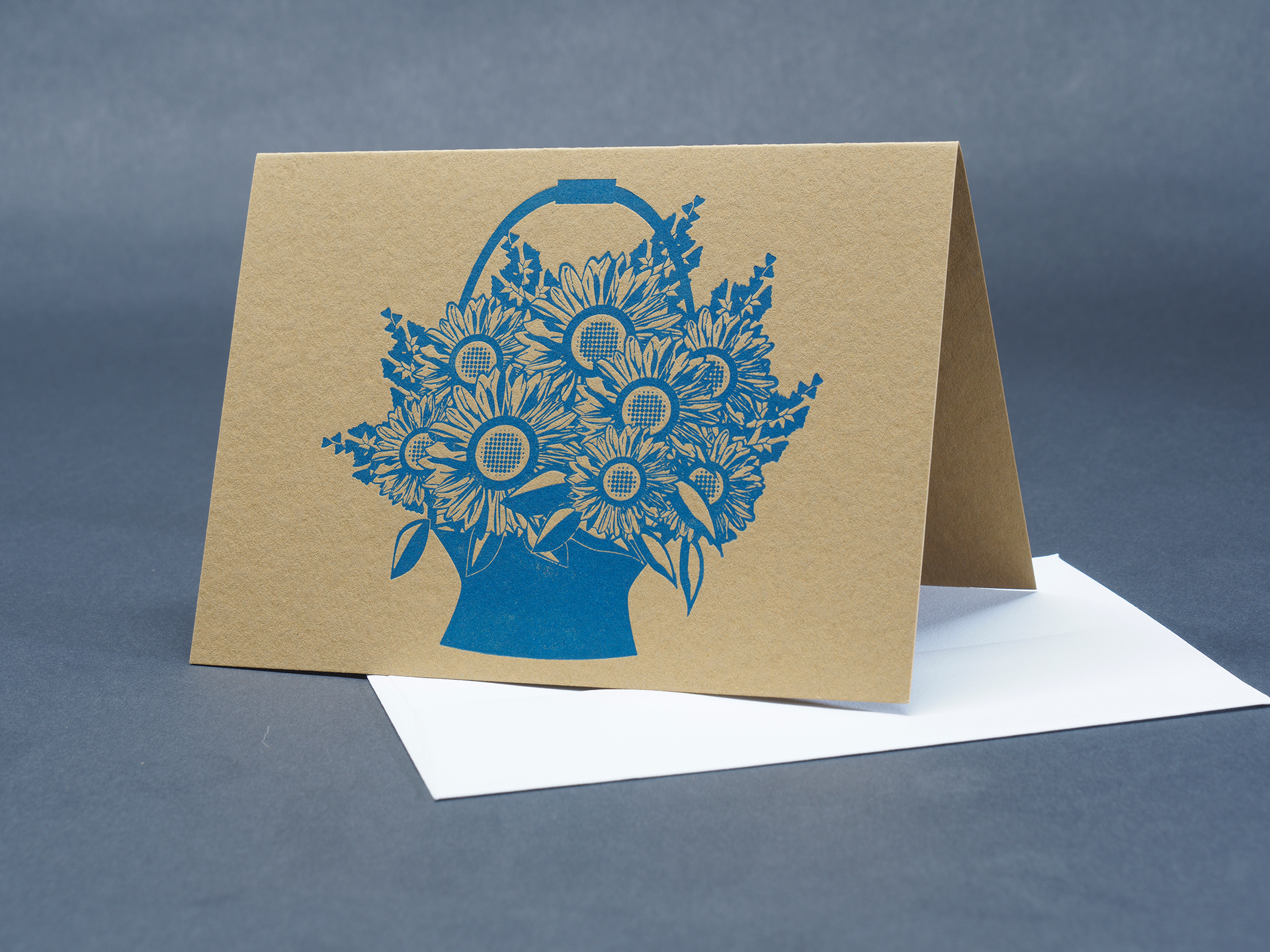 These cards are an addition to the cards I sell at a store locally. I design in Illustrator, and then have a photopolymer plate made, and then print on my Vandercook #1 proof press.