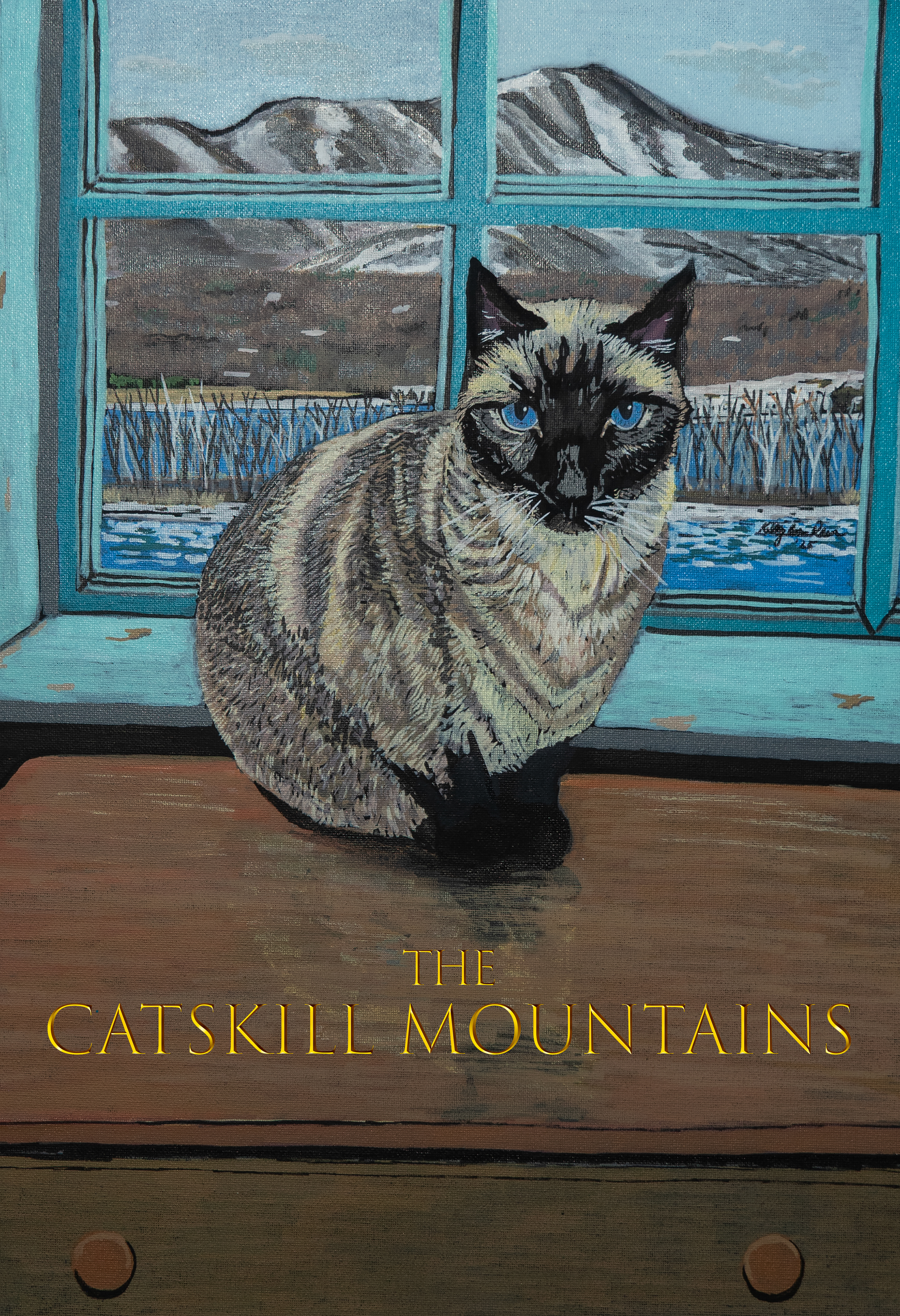 This is a Catskill Mountain tourism poster creation I designed. It was painted in acrylic paint markers with a digital text overlay over my photographed work. I wanted the cat in the image because the Catskill Mountains are often associated with a cat. The cat I drew is my cat, Willow, a seal point Siamese, and that was so the color of the fur and the eyes complimented the background mountains.