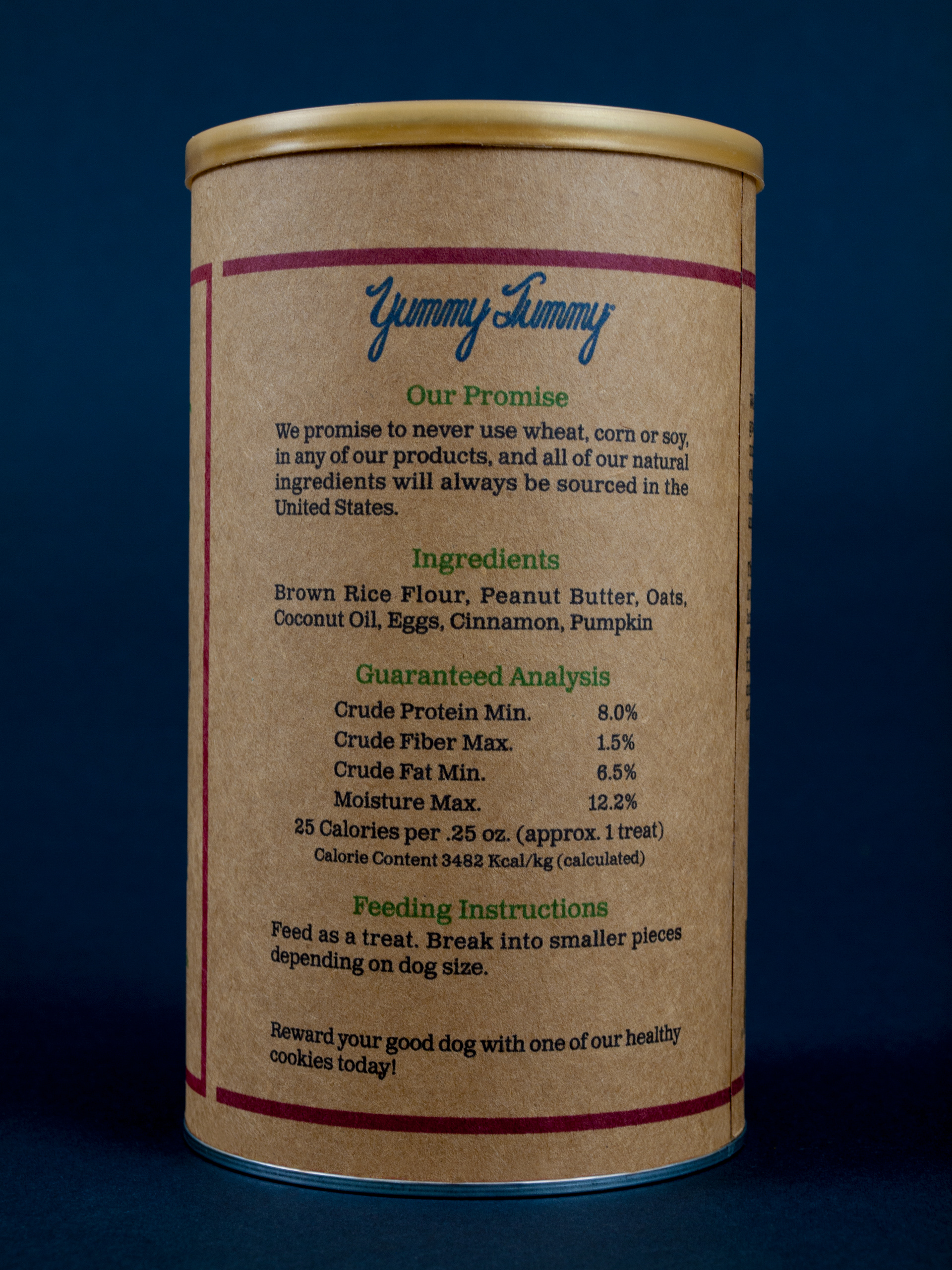 This label for dog treats is created with hand lettered type and a hand illustrated design. It was printed on craft paper.